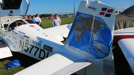 ...unless we had some luck. This we had. We encountered Dan Landry, which we met in Yellowstone, and he offered to put an add to ask for a rudder. After some hours we had already a choice of 5 rudders we could fly with. Finally we took Steve Voras“s rudder since he lives very close to Lakeland. Help was given from the Aishow field repair, and at the end of the show we flew to Punta Gorda.