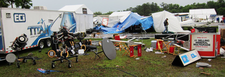We expected to be in the States for the next week and 2 days more. Two days after arriving to the airshow, a heavy tornado came through. The sky got dark, it started to rain, and suddenly very heavy winds blew across the whole aera. At that moment we were inside a exposition hangar, and it sounded as if the whole hangar wanted to fly apart. We had just one thing in mind: what happended to our airplane? We feared the worst.